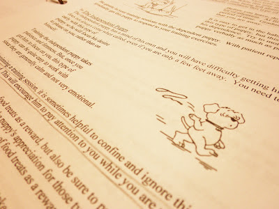 Since we attend class at a pet store, we had Moray's I.D. tag made and picked up a few more baby puppy toys. Our Puppy Program Manager said Moray's paperwork and puppy starter kit are in the mail, so aside from a few things that have to be puppy-proofed, I think we are set. I have started reviewing the puppy raising manual, and it is a good refresher.